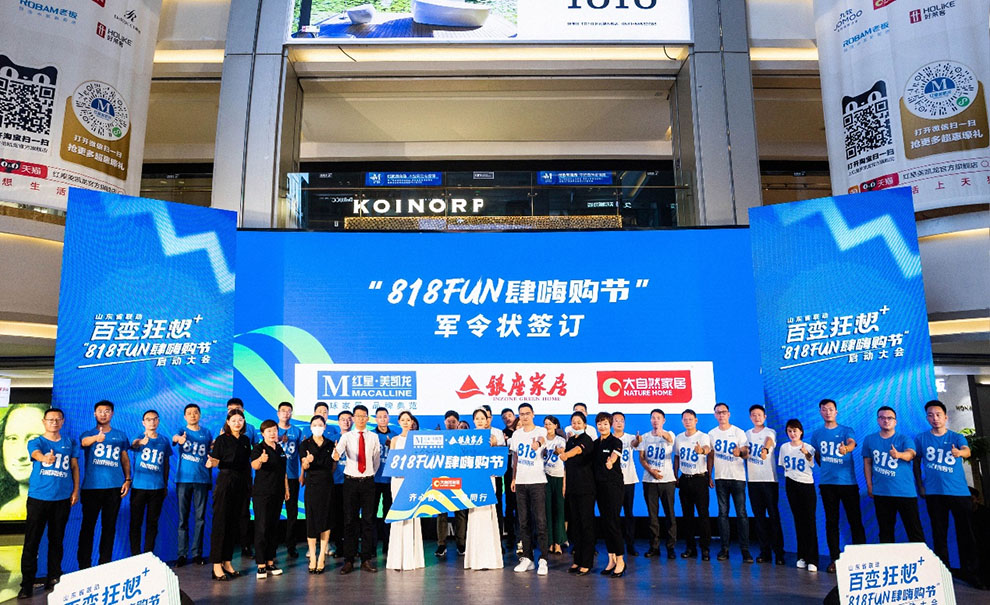 (圖為7月21日,山東濟南,紅星與大自然家居舉行818FUN肆嗨購節軍令狀簽訂儀式)