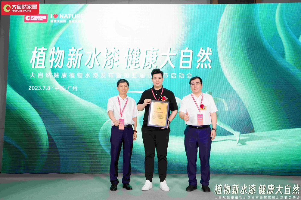 展會期間,大自然健康植物水漆與「自然板」新材料重磅發布。經數據驗證,植物水漆通過采用天然植物萃取,代替石油原料,可大幅度降低碳排放;同時擁有漆膜硬度更優、抗刮、耐污、耐黃變等硬核性能,已經獲得國家發明專利認證,經國內鑒定機構鑒定,技術檢測抗菌率>99%,能夠為消費者打造綠色環保的家居環境。