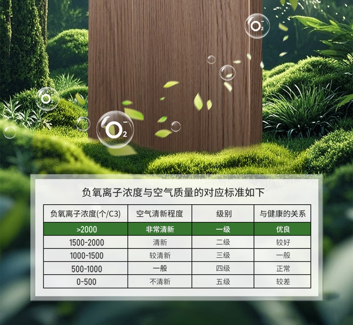 誘發(fā)空氣負(fù)離子量 比基礎(chǔ)環(huán)境提高10倍+