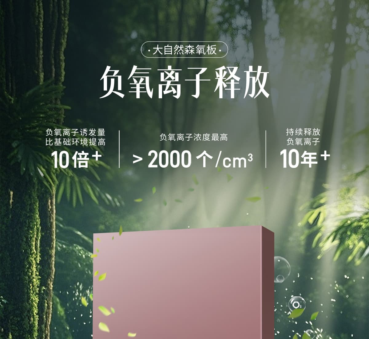 誘發(fā)空氣負(fù)離子量 比基礎(chǔ)環(huán)境提高10倍+