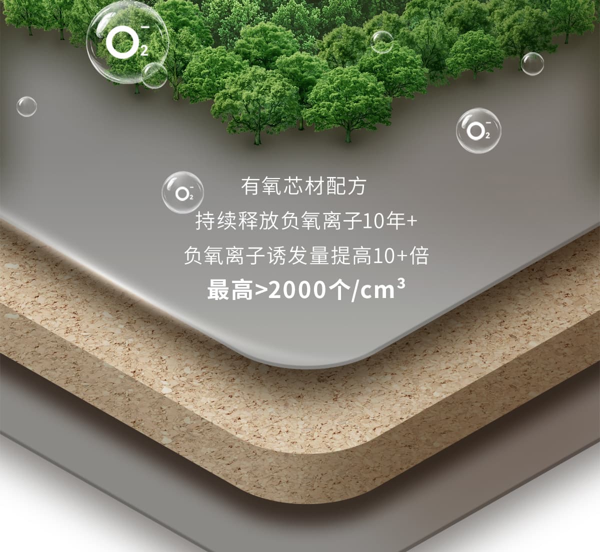 誘發空氣負離子量 比基礎環境提高10倍+